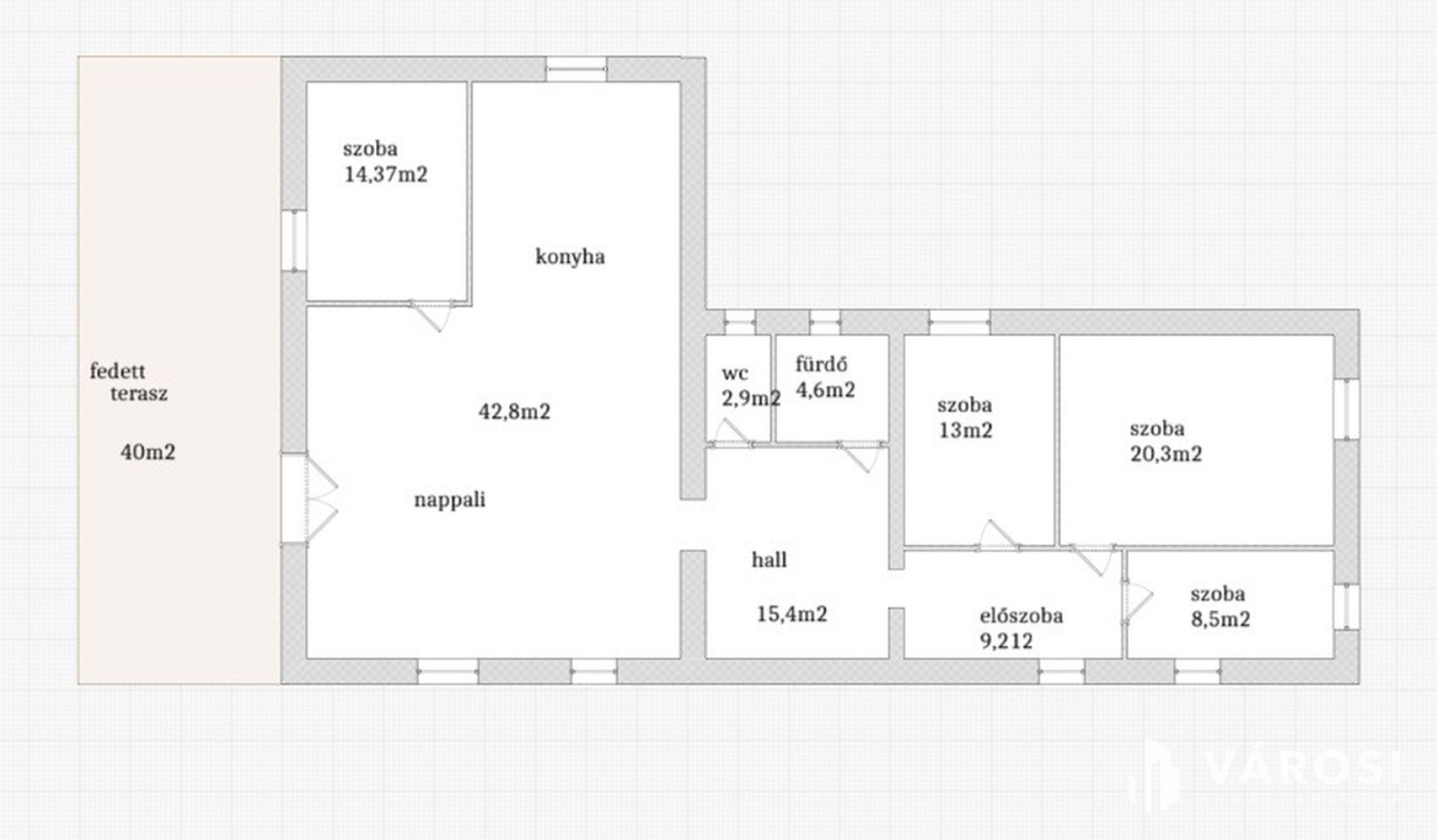 Entering through the front door, you arrive in a spacious entryway, from which three bedrooms open. The largest of these is 20 sqm and could easily serve as a second living room. To the left, you’ll find a 15 sqm hall fitted with a large wardrobe, from where you can access the bathroom and utility room, which also houses the heating system. From the hall, a wide, doorless opening leads into the huge, nearly 43 sqm L-shaped living room with kitchen. The kitchen is very practically designed—while it is in the same open space as the living room, its L-shape ensures that kitchen activities and living room activities do not disturb each other. If you open the door to the 40 sqm terrace, you create a massive 80 sqm space from the kitchen to the garden, perfect for family and friends' gatherings in maximum comfort! And there’s more: from the living room, another bedroom opens, which could serve as a study, guest room, or anything else you wish. The bedrooms have laminate flooring, while the living room, kitchen, entryway, bathroom, and utility room have tile flooring. Heating is provided by a combi boiler with radiators, but the air conditioning can also be used for heating. Thanks to the insulation, heating costs are extremely low: in winter, the gas bill is only 10,000 HUF, and in summer just 3,000 HUF.