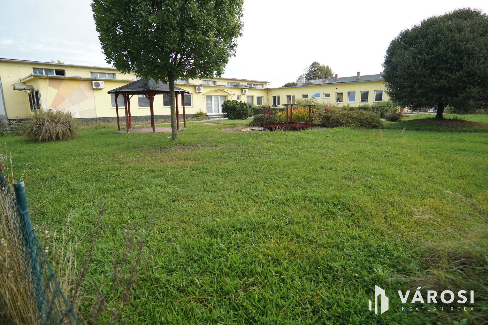 Az ingatlan egy közel 3500 m²-es parkosított telken fekszik, amely ideális választás mind kereskedelmi, mind ipari tevékenységek számára.