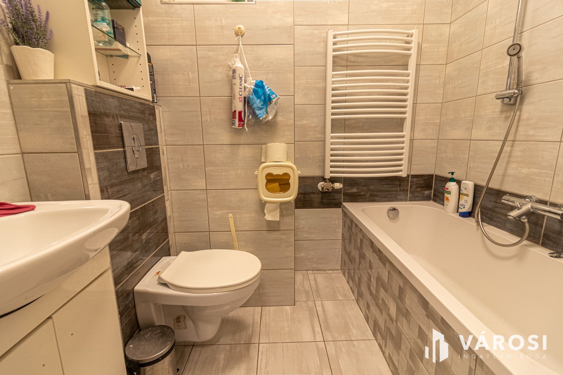 A nappali és a fürdőszobák új burkolatot és kaptak.