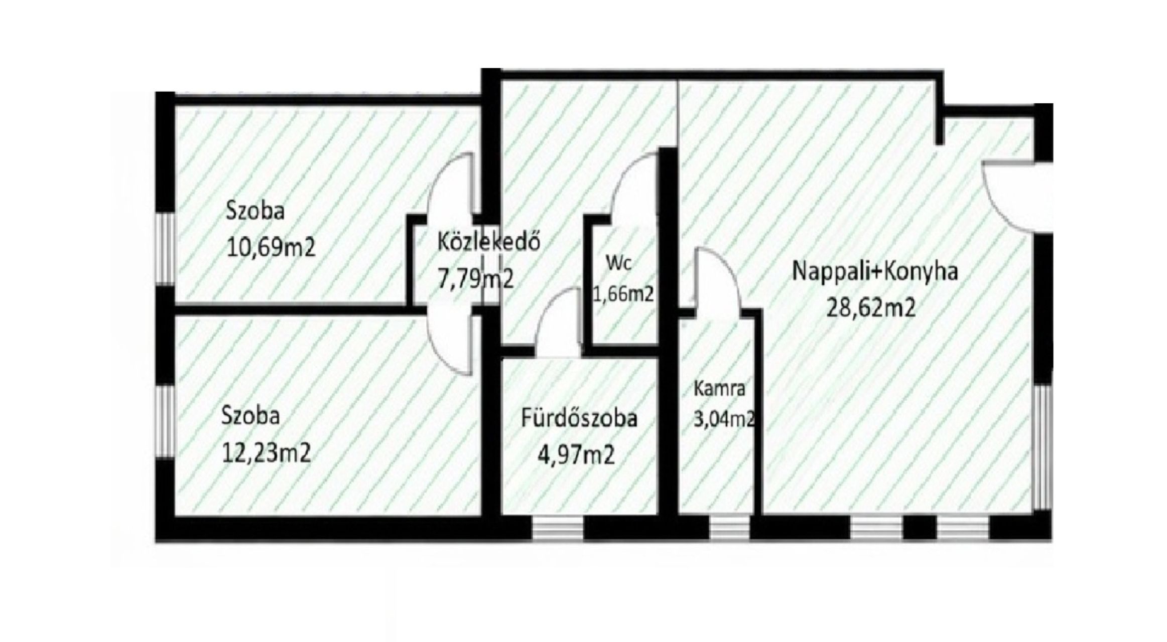 A lakás konyha nélkül kerül átadásra, így azt teljes mértékben saját ízlésére szabhatja.