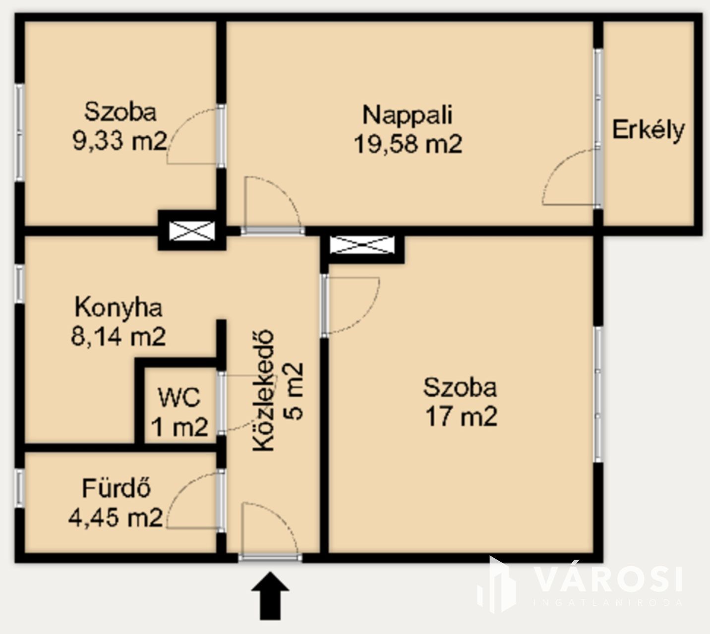 A lakás praktikus elrendezésének köszönhetően kényelmes életteret biztosít: a világos nappali a központi tér, míg a 2 hálószoba zavartalan pihenést tesz lehetővé.